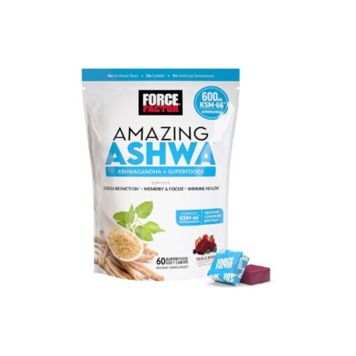 Suplemento en masticables suaves formulado con Ashwagandha y otros ingredientes naturales para apoyar la calma, la relajación y el bienestar diario. Ofrece una forma práctica y agradable de incorporar adaptógenos a la rutina diaria sin necesidad de cápsulas o tabletas.