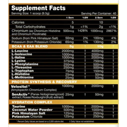 EAA Performance Powder con 12 gramos de aminoácidos de espectro completo, incluyendo BCAAs y los demás aminoácidos esenciales. Diseñado para apoyar la síntesis proteica, reducir el catabolismo y mejorar la recuperación muscular.