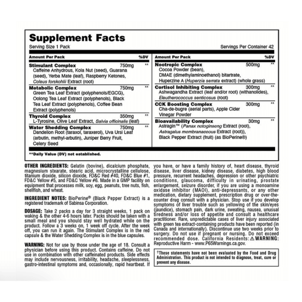 Animal Cuts es un quemador de grasa avanzado en packs, diseñado para apoyar la pérdida de grasa corporal, la definición muscular y el control del apetito. Su fórmula combina termogénicos, nootrópicos, diuréticos naturales y soporte metabólico, sin sacrificar masa muscular.