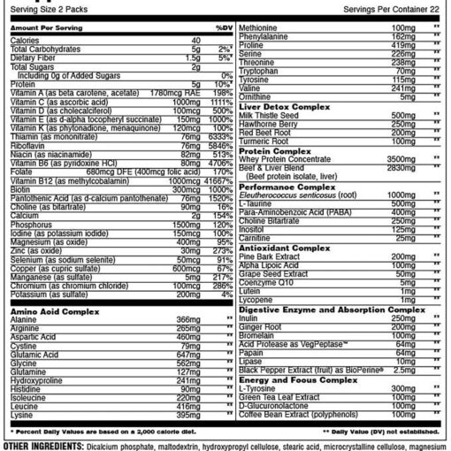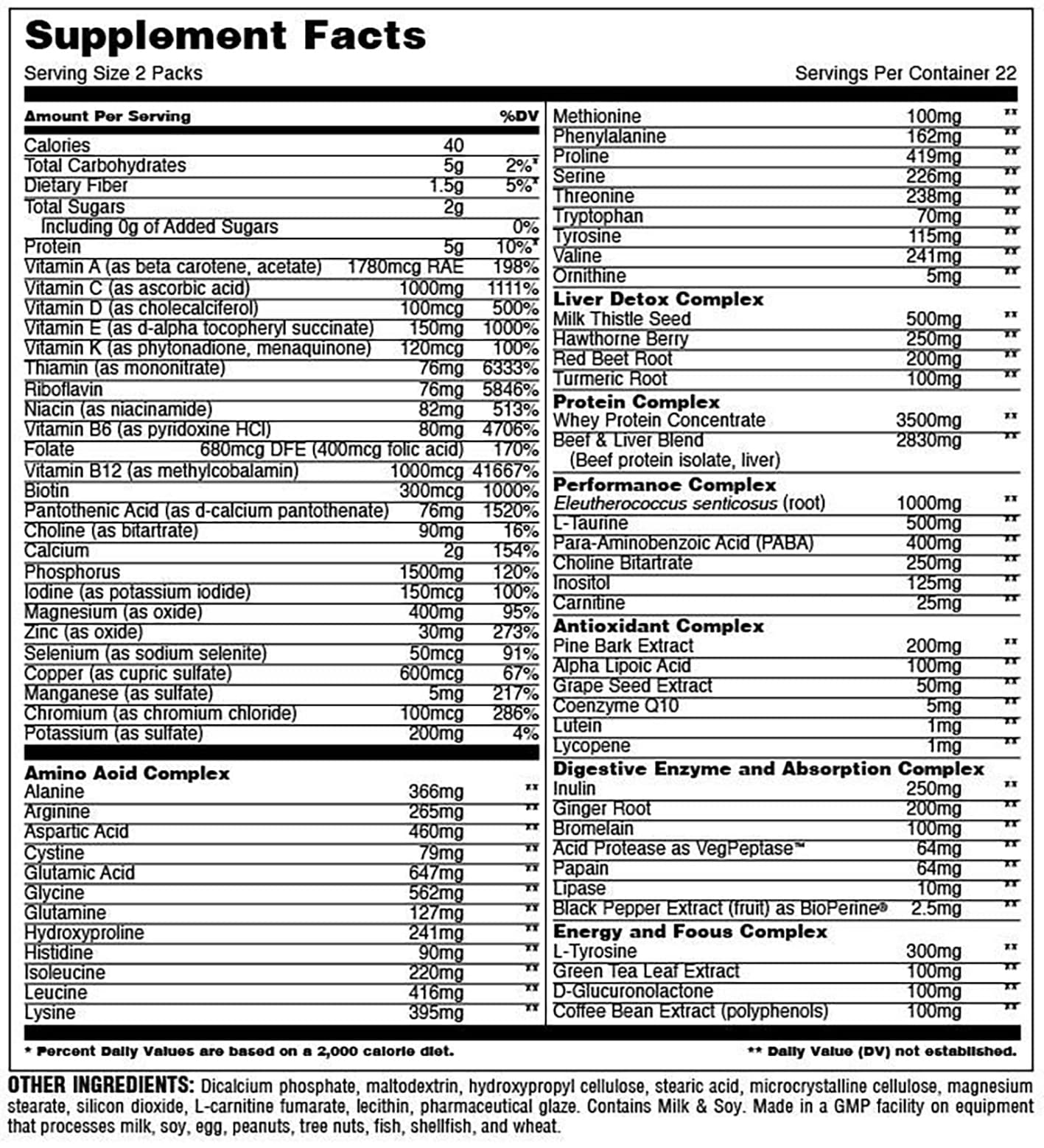 Animal Pak es un complejo multivitamínico y mineral de alto rendimiento, formulado específicamente para atletas, fisicoculturistas y personas con entrenamientos intensos. Aporta una combinación completa de vitaminas, minerales, aminoácidos, antioxidantes y complejos metabólicos que ayudan a cubrir las altas demandas nutricionales del cuerpo.