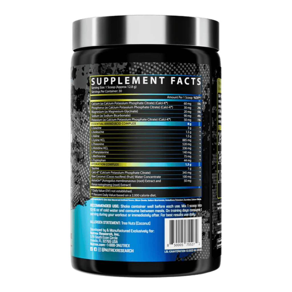 Suplemento en polvo que proporciona una fórmula completa de aminoácidos esenciales (EAAs), incluyendo los BCAAs en proporción 2:1:1, junto con un sofisticado complejo de hidratación a base de minerales, agua de coco, taurina y AstraGin®. Diseñado para potenciar tu recuperación, mantener la hidratación y soportar el rendimiento al máximo.